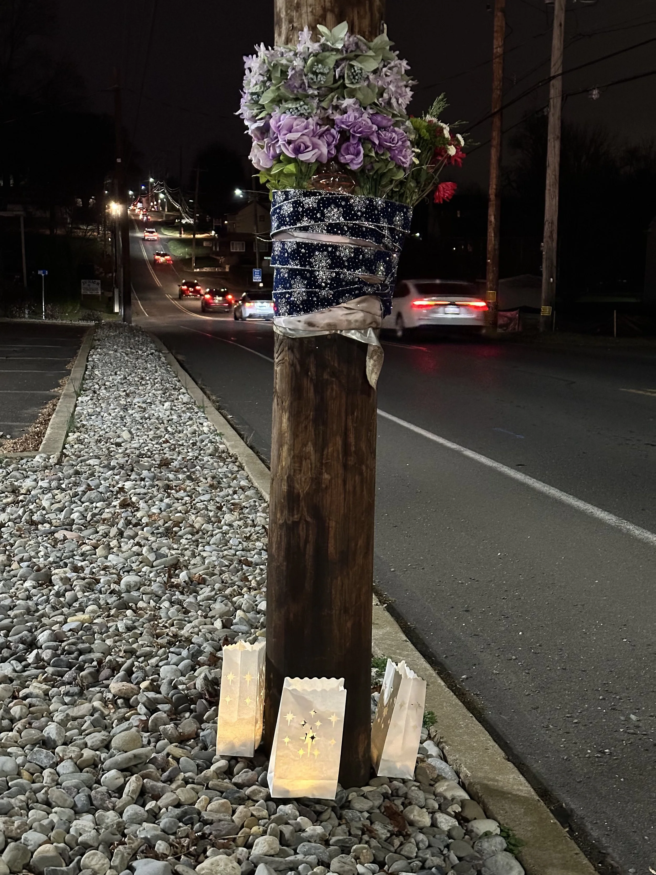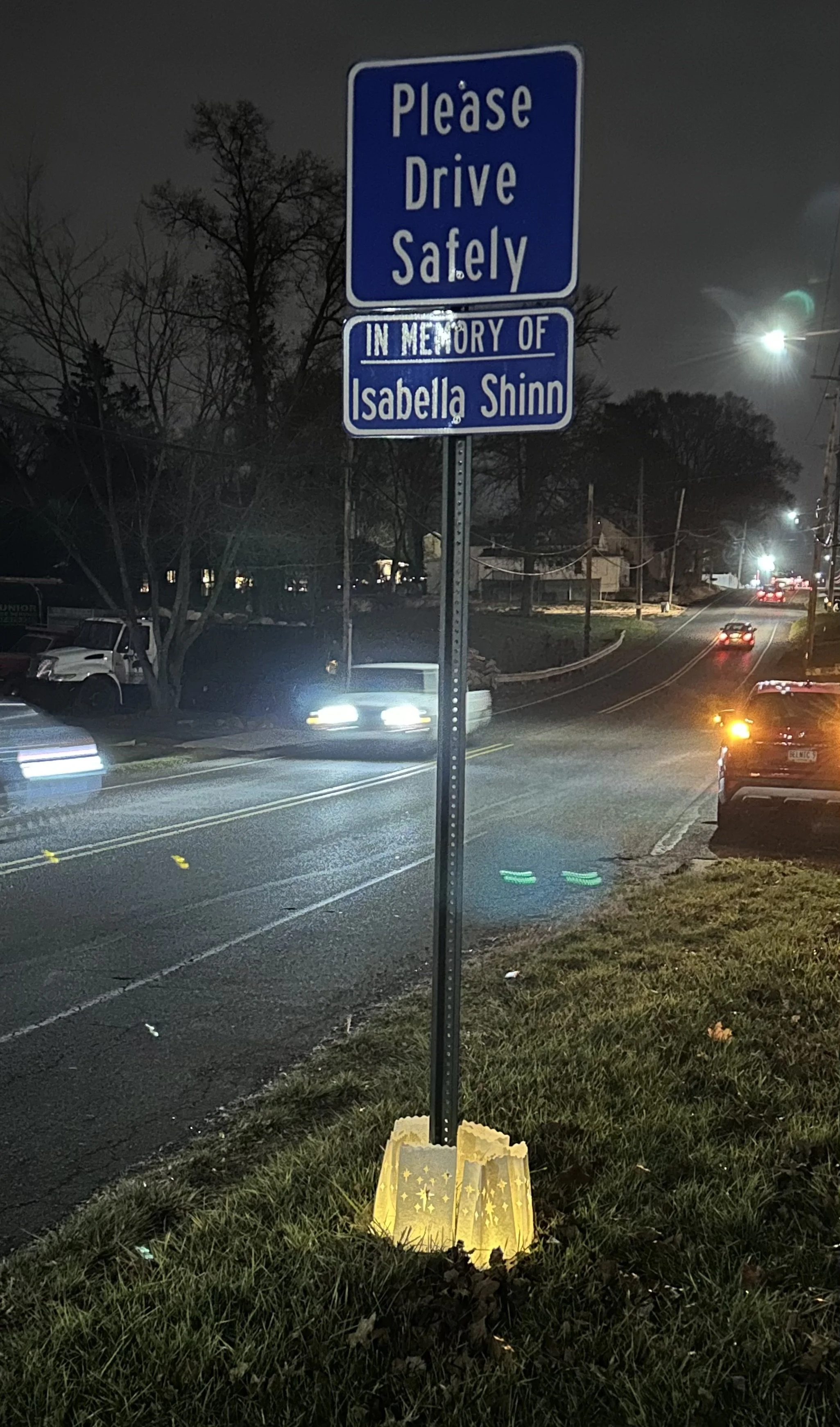 Isabella’s mother also decorated Isabella’s memorial safety sign and a nearby utility pole to honor her daughter.