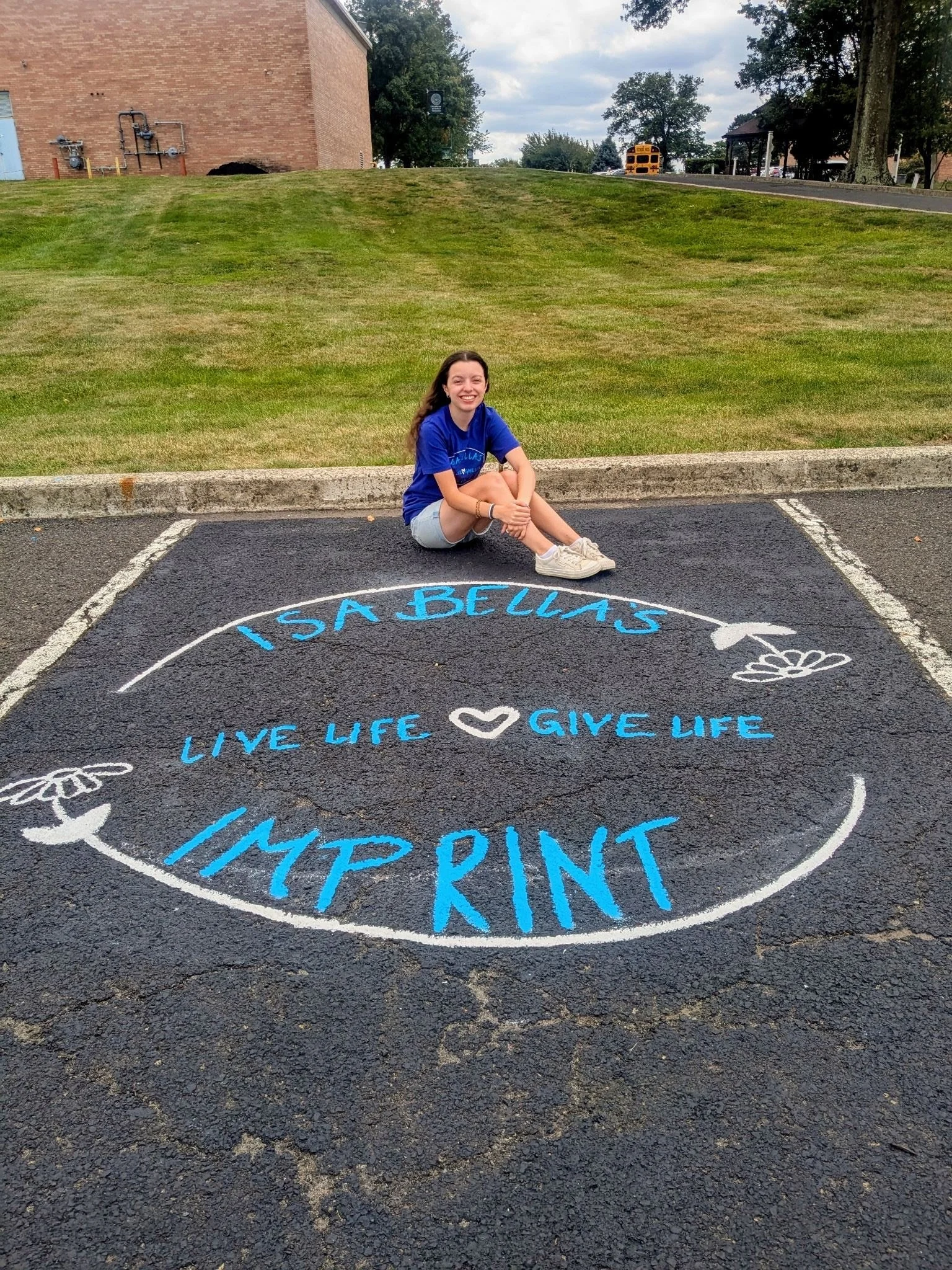 I heard about the opportunity for seniors to paint their parking spaces, and Isabella’s Imprint was the first thing I thought of. I think it was the Holy Spirit putting her on my heart, and I decided to paint for her. While my mom and I were chalking, painting, and waiting for it to dry, we got to tell people about Izzy and her story. Also, Mrs. Conte told me “Izzy would love this” and at that exact moment, a little white butterfly flew right past my face! White butterflies remind me of the people I miss, and it was confirmation to me that Izzy (and Jesus) are still watching over us!