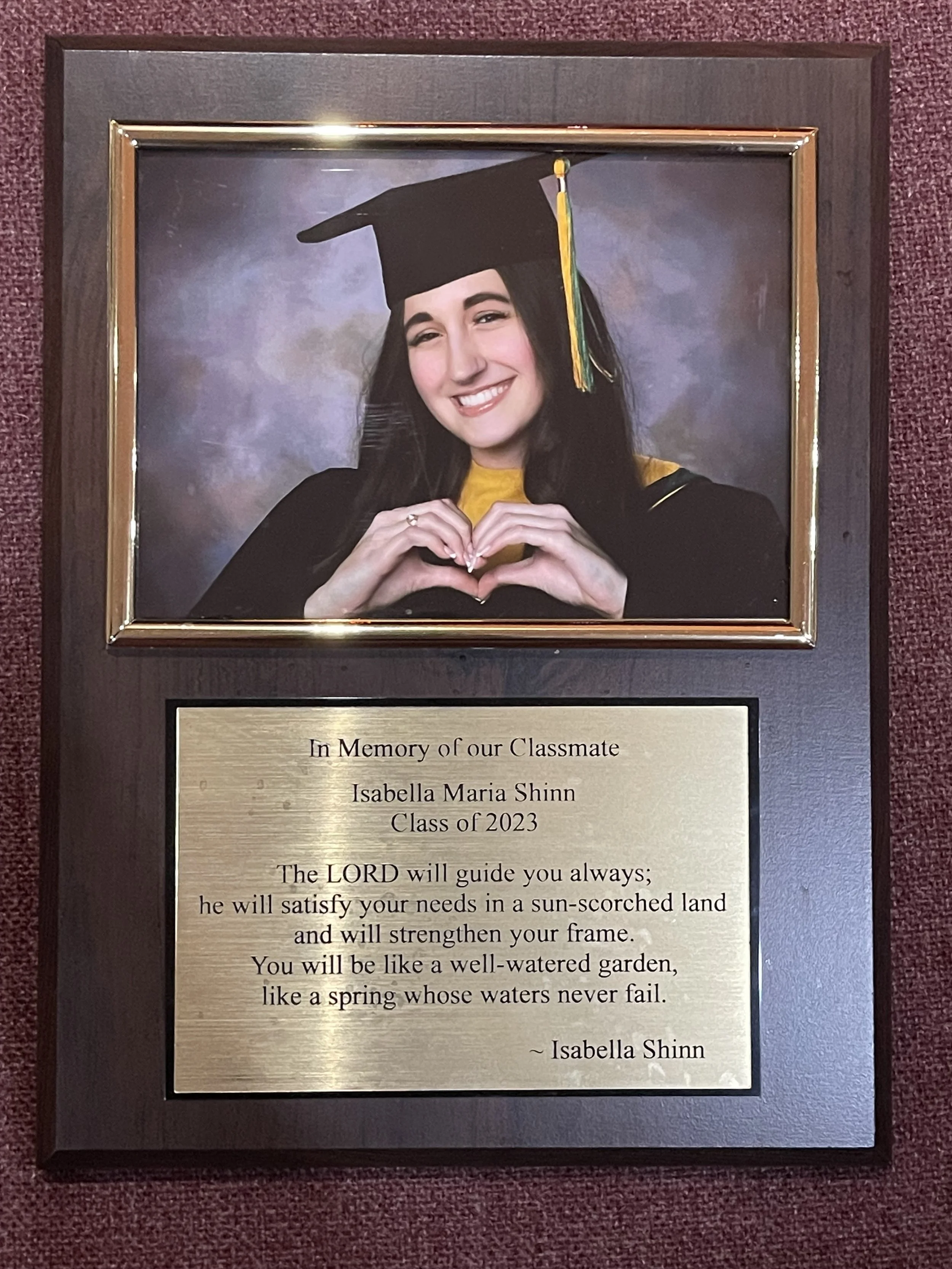 On November 2, 2023, All Souls Day, Isabella’s grade school - St. Katharine Drexel - dedicated a prayer garden in her memory.